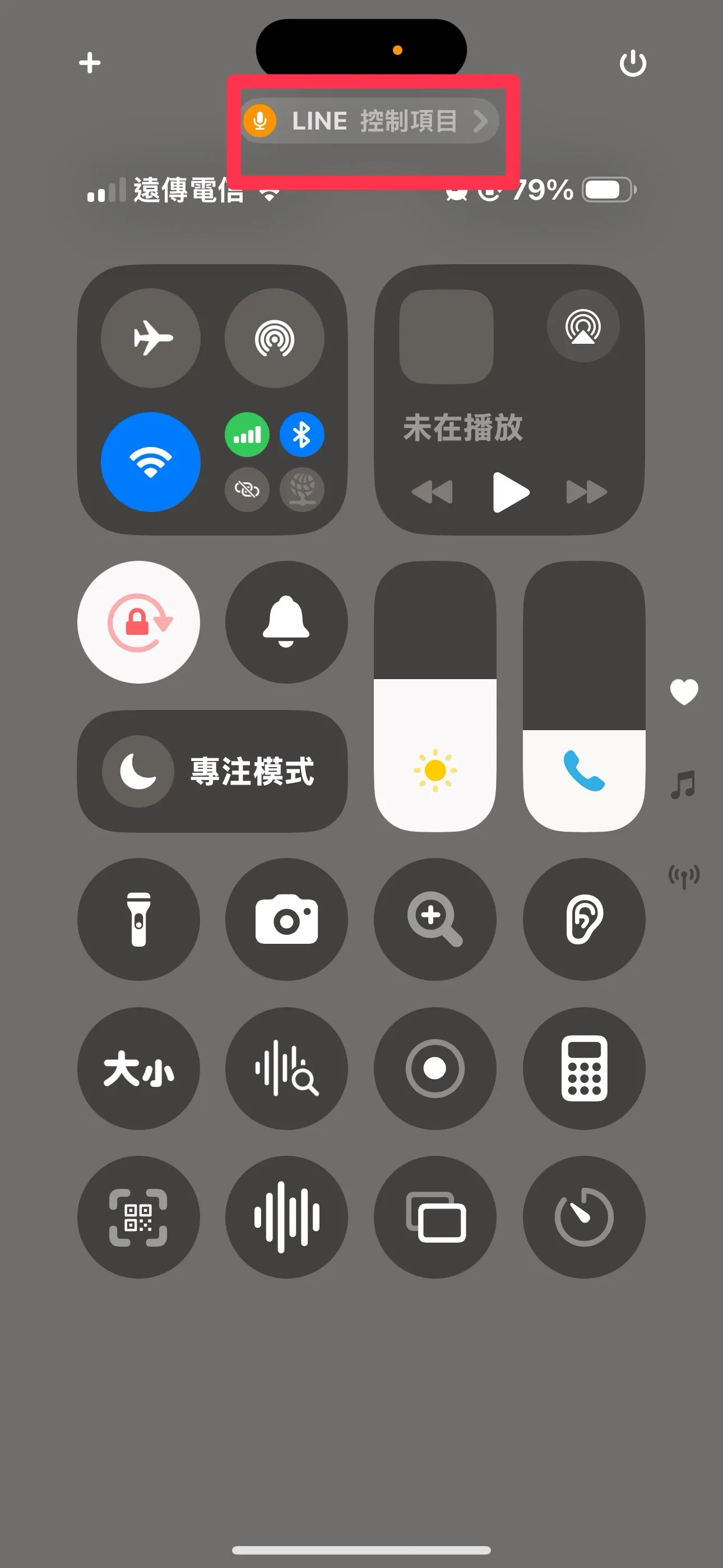 2. 從右上角滑下「控制中心」